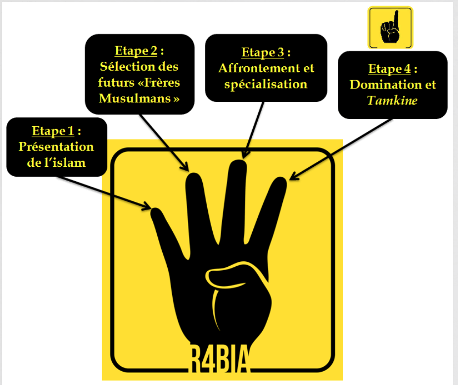 Gamal al-Gazzar, porte-parole de la Fédération égyptienne de de kung-fu a qualifié « d’ inacceptable » le geste de Mohamed Youssef. La Rabia et sa petite main jaune sont devenus le signe de ralliement des Frères musulmans et de leurs soutiens.Au delà de la solidarité avec les victimes de la répression, la Rabia a une signification mystique. Chaque doigt de la Main du Tamkine représente une étape de la prise de pouvoir.