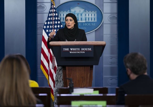 Le 25 février 2021, le point presse de la Maison-Blanche a été tenu par une nouvelle recrue de l’administration Biden, Sameera Fazili. Sa prestation a été largement commentée. A gauche, certains se félicitent de l’ « inclusivité » de la nouvelle équipe gouvernementale américaine. D’autres, féministes, critiquent son port du voile islamique, symbole de l’impudeur des cheveux féminins. A l’extrême-droite, de nombreux twittos ont profité de l’occasion pour propager des messages racistes.
