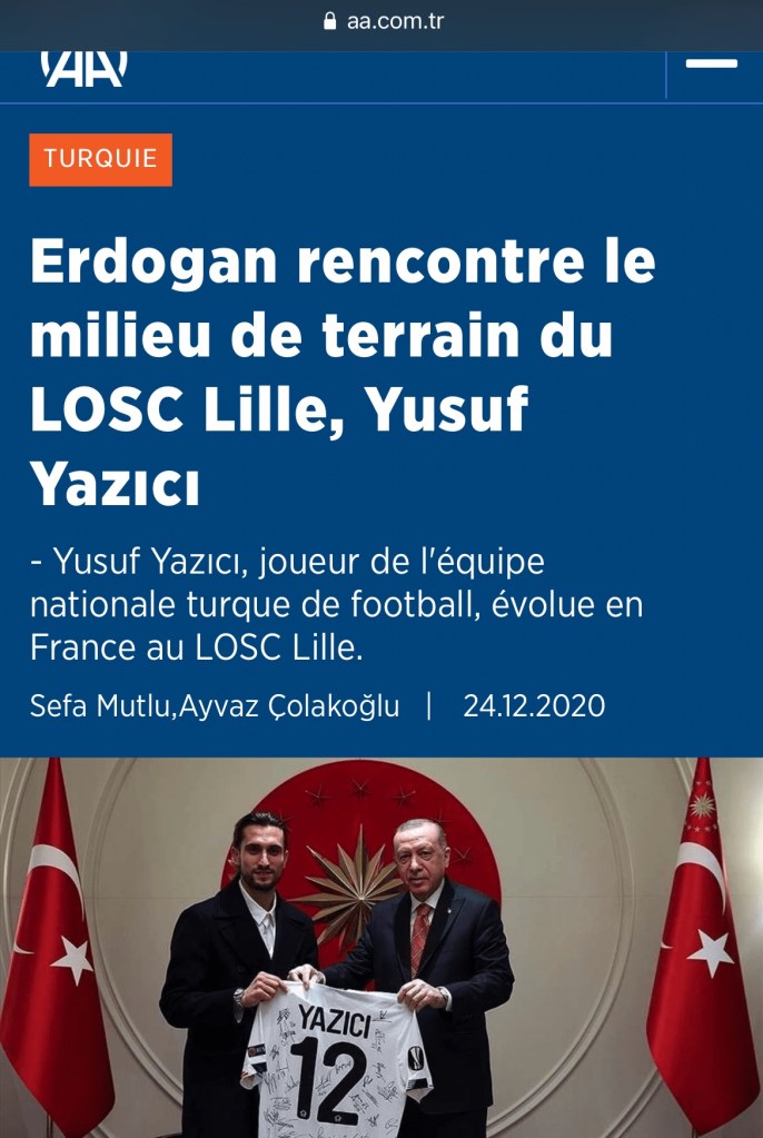 Les réussites sportives et financières ne doivent cependant pas masquer un aspect plus politique. Interrogé par de nombreux médias nationaux et locaux sur ces footballeurs turcs, Ibrahim Alci, présenté comme un simple président d’une association franco-turque du Nord, se félicite : « On ne se rend pas compte à quel point le LOSC est suivi en Turquie. C’est lunaire. Quand Yusuf Yazici marque trois buts à Milan, il marque l’histoire de LOSC mais pas seulement. Toute la Turquie regarde le LOSC ». Ce qui pourrait paraître comme un enthousiasmant signe de rapprochement entre la Turquie et la France prend une tournure différente lorsque l’on sait que Ibrahim Alci est le président du… CCMTF. Le CCMTF (comité de coordination des musulmans turcs de France) est la branche française du DITIB, qui est lui-même organisé et financé par la direction des affaires religieuses du gouvernement turc d’Erdogan. Le DITIB, qui se définit lui-même comme une organisation politique, suit la ligne islamo-nationaliste du parti d’Erdogan et a récemment rejeté la charte des imams de France. Dans une logique de prise en main de la diaspora turque en France, Ibrahim Alci est décrit par la presse comme un proche de Burak Yilmaz depuis son arrivée au LOSC. Il reconnaît même avoir été directement sollicité : « j’ai été appelé par le consulat turc pour les aider à s’adapter à la vie en France ».