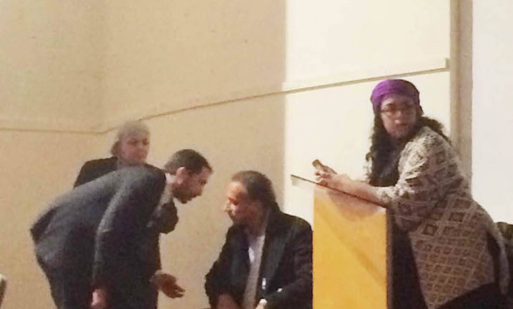 Tariq Ramadan a poursuivi à la tribune en congratulant Alain Gresh qui a « très bien présenté le lien avec la politique étrangère et les attentats ».